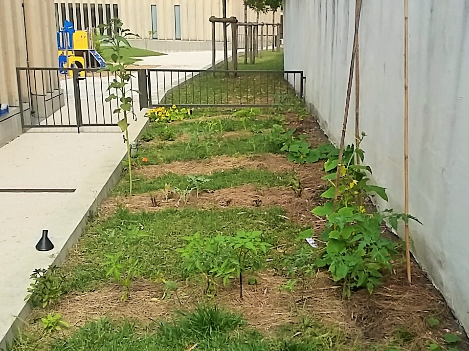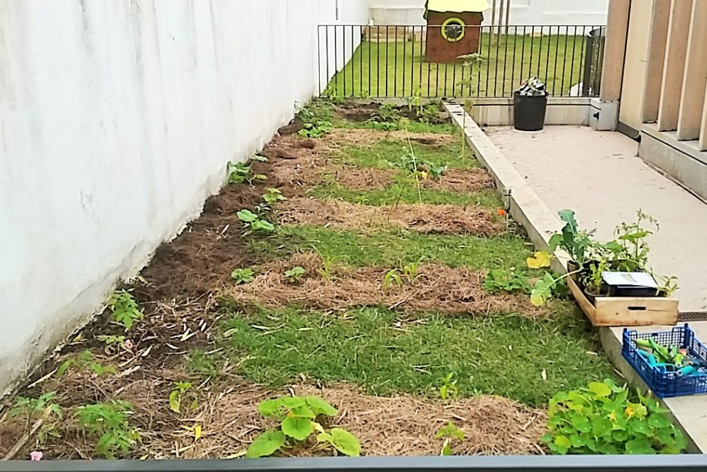 En attendant les bacs qui vont être déposés au square par la mairie, nous avons commencé une petite zone de culture accessible par la cour des maternelles. 5 rangées en pleine terre ont été mises en place en octobre 2019 au sein de l’école.