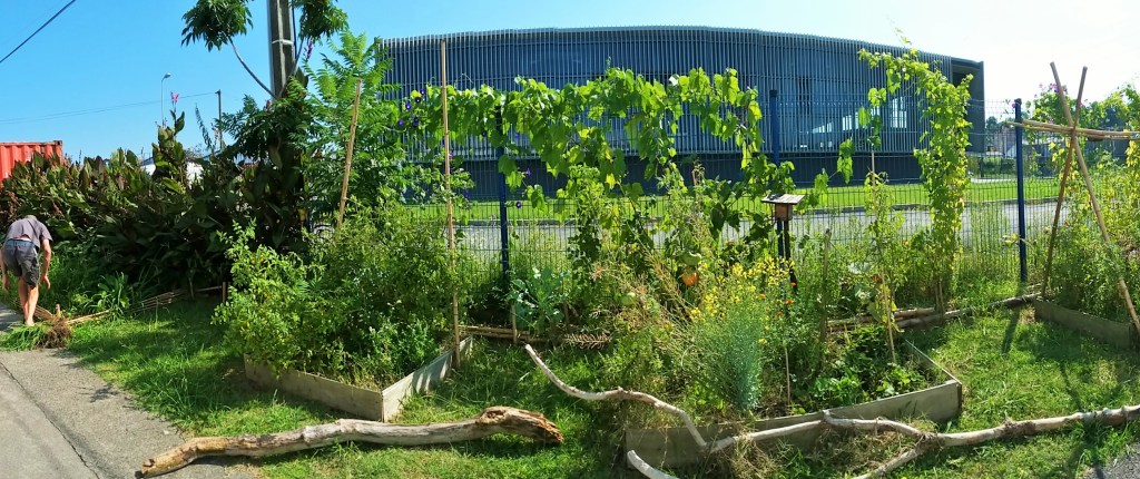 Description : Développer un Jardin qui participe à la récupération des eaux d’écoulement pour la culture de végétaux comestibles. Le personnel de SFE a à disposition un lieu où apprendre à planter des légumes et récolter les fruits de ce travail collectif. Les lieux de culture sont constitués de bacs et de zone de pleine terre dans la partie septentrionale. On y plante toutes sortes de plantes d’espèces potagères (légume fruits/fleurs/racine/feuille), des arbustes fruitiers mais aussi des fleurs mellifères (pour les insectes) ou décoratives (v.plan de zone).