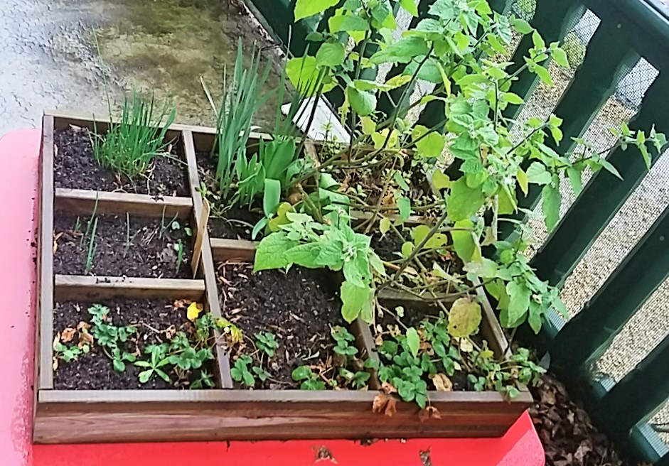 D’une part 3 bacs ont été mis à disposition par la mairie sur la terrasse de la crèche et aussi dans la cour mais nous pouvons également amenés les enfants au potager de la prairie… bref, ya de quoi faire oui!