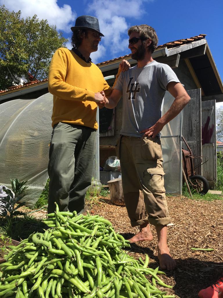 JB et Séba + 30 kg de fêves récoltées en avril 2019