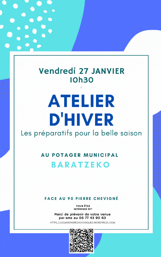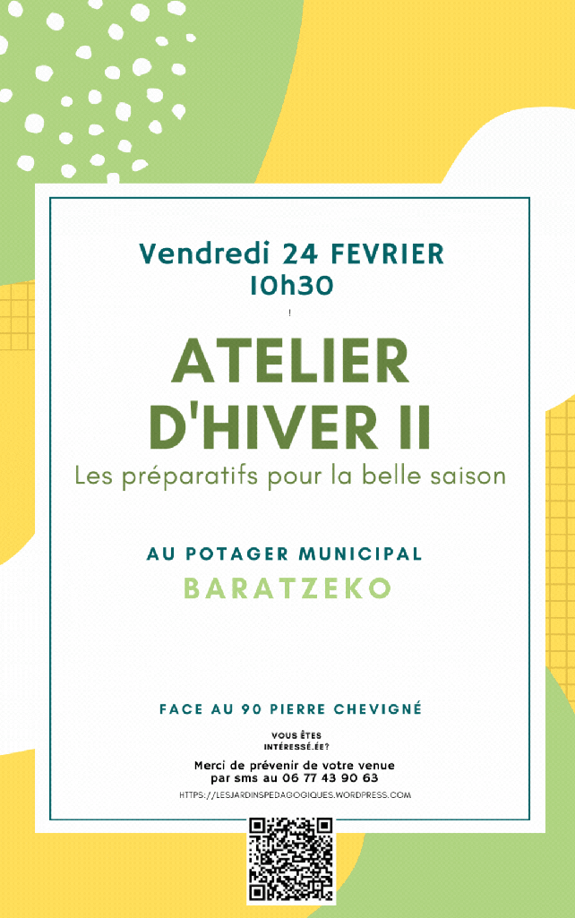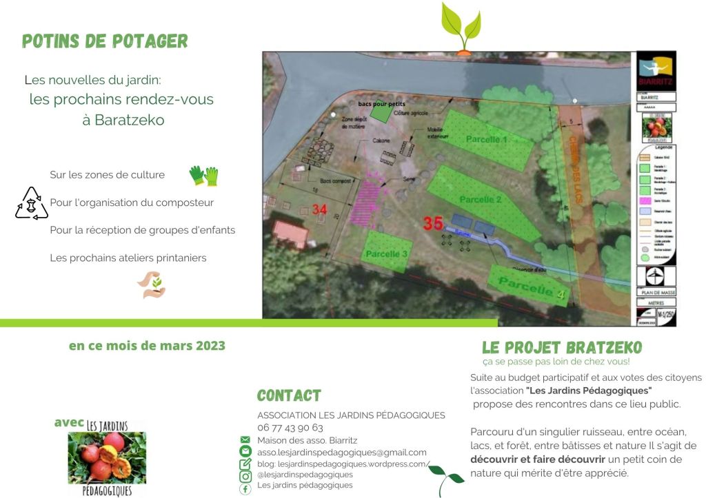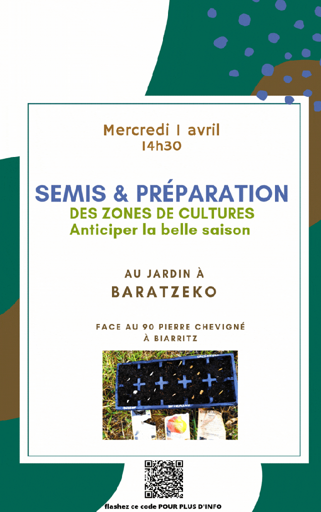 Tous les derniers mercredis du mois nous vous proposons des ateliers d’initiation gratuits au jardin « Baratzeko » face au 90 rue Pierre de Chevigne à Biarritz.